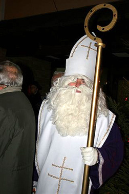 Gegen 16.00 Uhr fuhr St .Niklas auf einem Thron mit Traktor und Anhänger vor. Zuvor war er bereits durch mehrere umliegende Ortschaften gefahren. Mitfahrende Kinder warfen Bonbons auf die Straße. Als er von der Rolle geklettert war widmete er sich den anwesenden Kindern. Auch die kleinen Gäste aus Waldleiningen wurden dabei nicht vergessen. Irgendwie kam uns Waldleiningern sein Bischofsgewand bekannt vor. Könnte es sein.....?