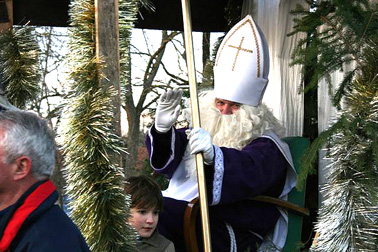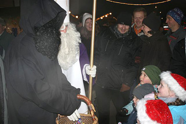 Und dann kam er endlich: St. Niklas aus Xirocourt mit seinem schwarzen Gesellen, bei uns Knecht Ruprecht genannt. Sie verteilten Bonbons an die Kinder. Aber auch Erwachsene durften schon mal in den Sack greifen. Dieser Nikolaus war wohl gewandet, nicht wie unser roter Coca-Cola-Import aus Amerika, sondern im Bischofsgewand, sehr beeindruckend.