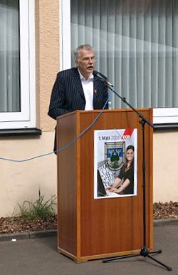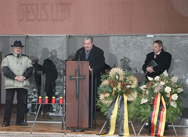 Die Ansprachen wurden von Pfarrer Stephan Kuntz, von der evangelischen Kirchengemeinde und Ortsbürgermeister Franz Pfeifer gehalten. Ortsbürgermeister Pfeifer sprach die Hoffnung aus, dass durch das Erinnern kein Mensch vergessen wird, der hier gestorben ist. Eine Hoffnung, dass Menschen es endlich lassen Kriege zu führen, und einander zu vernichten.