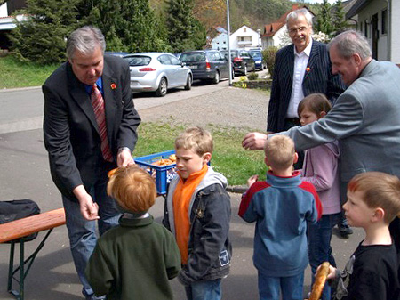 Bevor sich alle Anwesenden auf die Straße begaben um dem angekündigten Spektakel, wie es die französischen Freunde nannten, zu widmen wurden noch kleine Geschenke des Freundschaftsbeweises ausgetauscht. Auch der Landtagsabgeordnete, André Barbier, hatte es sich nicht nehmen lassen, die deutschen Freunde wieder zu begrüßen.
