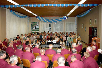Erstmals musste die Serenade im Bürgerhaus stattfinden. Schade, denn eine solche Veranstaltung sollte eigentlich im Freien stattfinden. Trotzdem wurde es eine gelungene , auf hohem Niveau dargebotene Abendmusik. Ortsbürgermeister Franz Pfeifer konnte die trotz der unsicheren Witterung erschienenen zahlreichen Gäste begrüßen. Besondere Grüße gingen an Pfr. Kuntz von der evangelischen Kirchengemeinde und die ehemaligen Mitbürger Heidi und Gerhard Gundermann. Sie waren eigens für die Serenade angereist.
