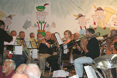Am Sonntag spielte in gewohnt flotter Art die Blaskapelle Hochspeyer unter dem Dirigenten Rainer Schwarz und seinem Vorstand Regina Helf.