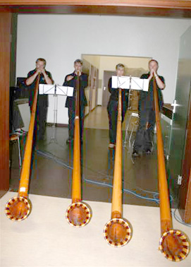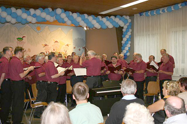 Neu in diesem Jahr war ein Alphornquartett dabei. Obwohl diese Instrumente erst in der freien Natur ihren vollen Klang entfalten können, klangen sie doch, vom Flur her geblasen, einmalig gut intoniert. Für Waldleiningen wahrlich seltener Hörgenuss. Auch der MGV 1911 Hochspeyer glänzte wieder durch eine gute Auswahl gut eingehender Lieder wie "Am Bach die alte Mühle", "Das Elternhaus", "Abendfrieden", "Ich liebte einst ein Mädchen" und "Pfälzer Weinknorz". Vor allem "Londonderry Air" mit Tenorsolo fand einen besonders kräftigen Ablaus. Man merkt diesem Männerchor an, dass er mit seinem Dirigenten , Prof.Walter Endress, einen Profi am Pult stehen hat, der alles aus dem Chor herausholt. Pfr.i.R.Heinz Scheuermann wählte in diesem Jahr als Zwischenlesungen Texte von der in Waldleiningen gebürtigen Mundartdichterin Waltraud Meißner. Vor allem ihr "Pälzer Gebet" erheiterte die Zuhörer. Wie das bei den Waldleiniger Serenaden üblich ist, wurde auch wieder das Publikum mit Liedern einbezogen. Drei Lieder waren im Programm: "Geh aus mein Herz...", bestehend aus lauter Liedanfängen aus dem Ev. Gesangbuch sowie die beiden Abendlieder "Bleib bei mir Herr" und "Kein schöner Land in dieser Zeit". Pfr.iR.Heinz Scheuermann bedankte sich am Schluss für alle Aktiven für das zahlreiche Kommen und den freundlichen Applaus.