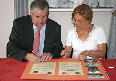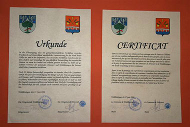 Es war schon ein bewegender Augenblick als die beiden Gemeindevorstände die Urkunde unterzeichneten. Eigentlich hätte dies 2006 beim 20-jährigen Jubiläum in Waldleiningen bereits geschehen sollen. Aber damals war der zu dieser Zeit amtierende Bürgermeister aus Xirocourt nicht erschienen.