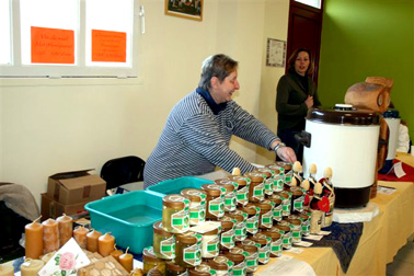 eine Delegation von Bürgerinnen und Bürgern bei schönstem Winterwetter nach Xirocourt. Natürlich sollten auch die Waldleininger einen Stand beschicken. Mit zwei Angeboten waren sie angereist. Einmal bot Frau Scherer aus Enkenbach Honig, Met und Honigwachskerzen an. Dann wurde von mitgereisten Ortsratsmitgliedern Glühwein angeboten. Der Erlös aus diesem Glühweinverkauf soll der Bürgermeisterin an unserem Weihnachtsmarkt übergeben werden. Außerdem verteilte Franz Pfeifer kleine Geschenke an die Kinder von Xirocourt.