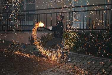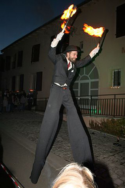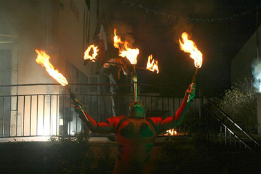 Den absoluten Höhepunkt aber bildeten die Darbietungen der Gauklergruppe /Extenses Arts/ unter der Leitung von Jérémie Duval. Diese Gruppe verstand es ausgezeichnet, die Zuschauer mit ihren Jonglierkünsten mit bis zu fünf brennenden Fackeln, zu begeistern. Auch der übergroße Stelzenmann und der Fahrer auf dem hohen Einrad boten überzeugende Leistungen. Wahre Begeisterungsstürme verursachte aber der Feuerspeier. Überhaupt spielte Feuer eine dominante Rolle bei dieser Gruppe.