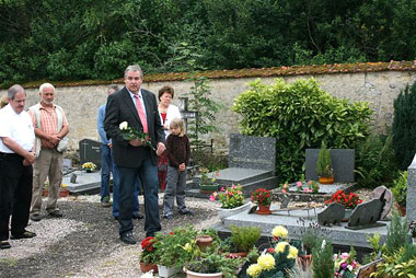 An zwei Gräbern legte Franz Pfeifer auf dem Friedhof von Xirocourt Blumen ab, einmal am Urnengrab des ehemaligen Bürgermeisters und Mitbegründer der Partnerschaft, Jean Jacob, sowie am Grab von Patrick. Er war aktives Mitglied von Alex gewesen und uns Waldleiningern durch seine Mitarbeit bei den Weihnachtsmärkten ein guter Freund geworden. Leider verstarb er zu früh durch einen tragischen Verkehrsunfall.