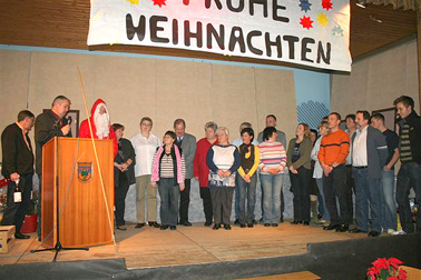 Auf Einladung des Ortsbürgermeisters kamen über 20 Seniorinnen und Senioren zum diesjährigen vorweihnachtlichen Nachmittag. Eingeladen waren alle Mitbürgerinnen und Mitbürger über 70. Es wurde wieder eine besinnliche Feier mit Texten, Musik und Gesang. Franz Pfeifer war erfreut, dass er eine so große Schar begrüßen konnte. In einer kleinen Besinnung ging er auf den Sinn des kommenden Festes ein. " Um an Weihnachten glücklich zu sein braucht man kein Festmenü oder eine Traumreise. Hier sind andere Werte gefragt: Zuwendung, Wärme und Versöhnung. In Armut und Kälte ist einer in die Welt zu allen Menschen gekommen, der mit seinem ganzen Leben Licht und und Wärme sein wollte. An einem Kreuz hat er die Welt wieder verlassen. Wenn du offen bist für das Geheimnis dieses Menschen, offen wie ein Kind, wirst du Licht empfangen und die Wärme spüren und kannst diese an andere weiter geben."