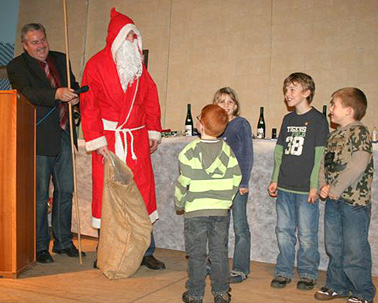 Die Programmpunkte haben schon Tradition. So kommt alljährlich der Nikolaus um die Kinder der Vereinsmitglieder zu beschenken. Vom Nikolaus beschenkt wurden auch die aktiven Spieler mit ihren Betreuern. Sie erhielten Duschtücher, die freundlicher Weise von Peter Fische mit dem ASV-Logo bestickt wurden.
