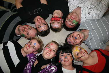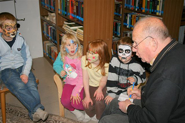 Zunächst wurden die Schlafplätze hergerichtet. Mit einer Schminkaktion wurde gestartet. Herrliche Fantasiegestalten wurden von Sabrina Balzer und Katrin Eutenmüller in Farbe umgesetzt. Dann wurden zwei Gruppen gebildet, da die Altersspanne von sechs bis elf Jahren für eine Erzählgruppe zu groß war. Herr Helmut Wolny übernahm die Kinder von sechs und sieben Jahren. Die Acht-bis- Elfjährigen kamen als Gruppe zu Pfr. Heinz Scheuermann.