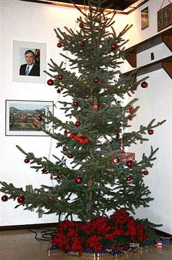 Zum Abschied bekam jede Teilnehmerin und jeder Teilnehmer vom Ortsbürgermeister einen Weihnachtsstern geschenkt, die sehr dekorativ unter dem Weihnachtsbaum deponiert waren.